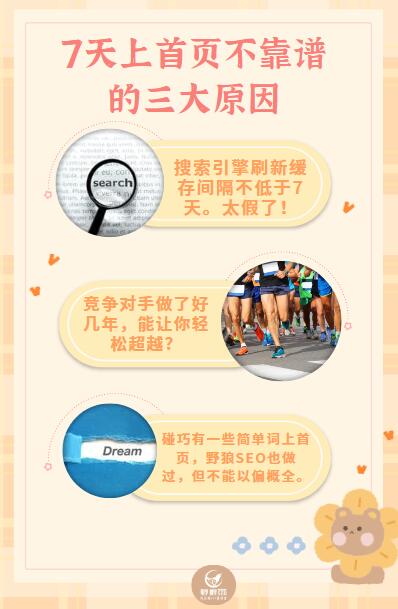 有很多做SEO的客戶,我們會選擇勸退他們,這是為什么呢?因為相對于很多種推廣方式來說,SEO講究持續(xù)投入、長期性。而同時,也有很多作弊SEO瞎忽悠,給客戶說的好像是7天上首頁才是真相。