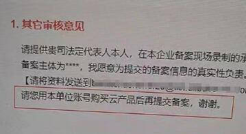 有的服務(wù)器上的碼被人用了之后,別人的那個備案查出來像是虛假備案,就會給整個服務(wù)器上的碼都打上標(biāo)記。用到這個碼的都提示讓購買云產(chǎn)品后再提交備案。實際上是說那個備案服務(wù)碼,不太對勁兒,需要換一個。
