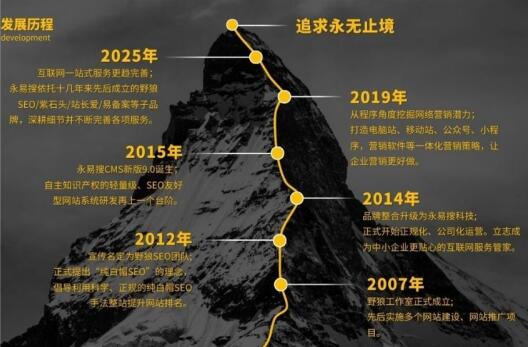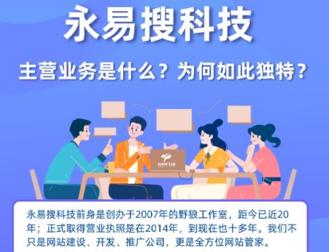 永易搜科技前身是創(chuàng)辦于2007年的野狼工作室,距今已近20年;正式取得營(yíng)業(yè)執(zhí)照是在2014年,到現(xiàn)在也十多年。我們不只是網(wǎng)站建設(shè)、開(kāi)發(fā)、推廣公司,更是全方位網(wǎng)站管家。 研發(fā)一>生產(chǎn)一>銷售為一體 公司自主研發(fā)多套程序,持續(xù)升級(jí)中: 網(wǎng)站內(nèi)容管理系統(tǒng)(永易搜CMS) 商城管理系